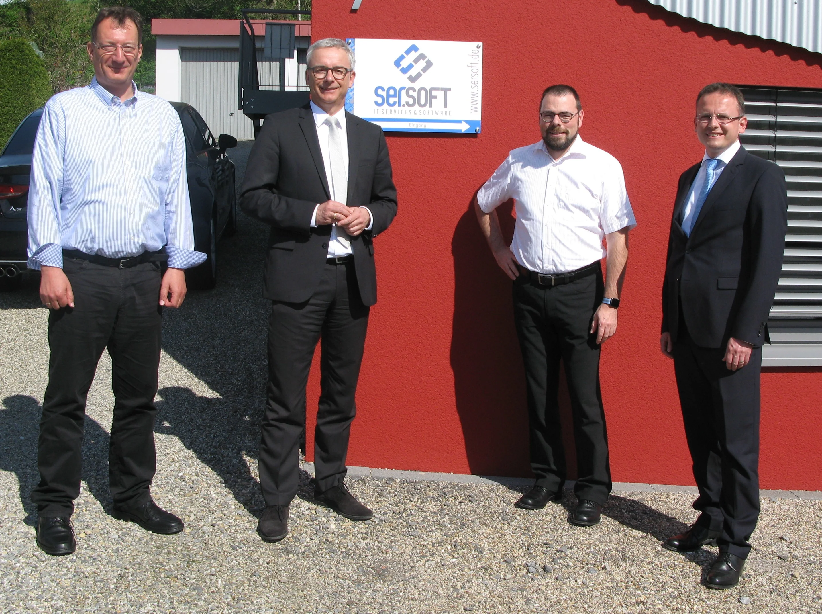 (f.l.t.r: Georg Ziegler / ser.soft GmbH, district administrator Dr. Christoph Schnaudigel, Daniel Friedrich / ser.soft GmbH, mayor Armin Ebhart)